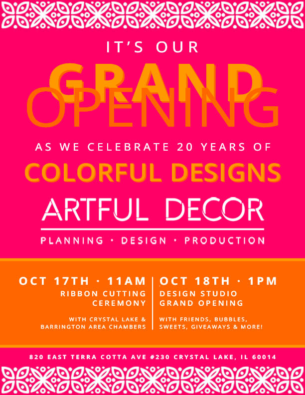 Join us on Friday October 17th at 11am to celebrate the grand opening of Artful Decor's Design Studio!