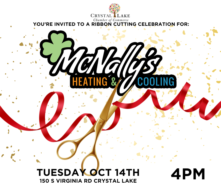 Join us on Tues. Oct 14th as we celebrate a ribbon cutting to officially welcome McNally's Heating & Cooling to the Chamber and Crystal Lake Community.