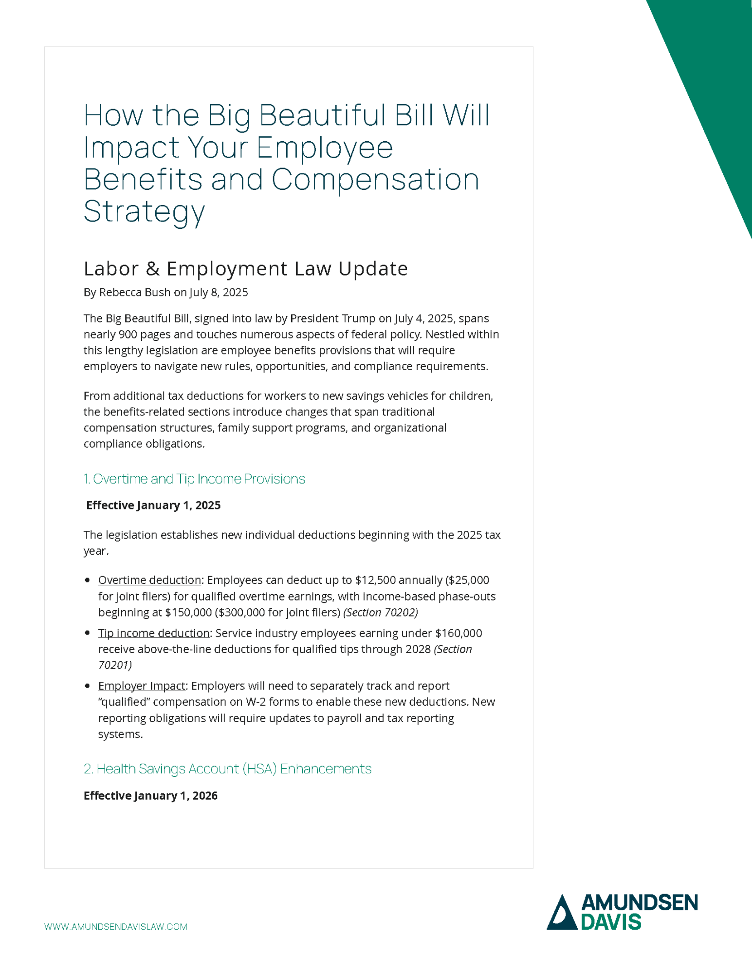 How the Big Beautiful Bill Will Impact Your Employee Benefits and Compensation Strategy Back to Member News/Press Releases How the Big Beautiful Bill Will Impact Your Employee Benefits and Compensation Strategy By Katie Sinde 7/8/2025 Images × Share × Email Facebook LinkedIn X Pinterest Powered By GrowthZone
